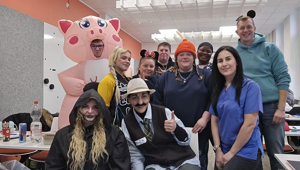 Am Montag sorgten die Auszubildenden in Gevelsberg bei den Mitarbeiterinnen der Pflegeschule für ein herzhaftes Lachen - sehr viele kamen verkleidet und auch die Kursleiterin machte mit :)