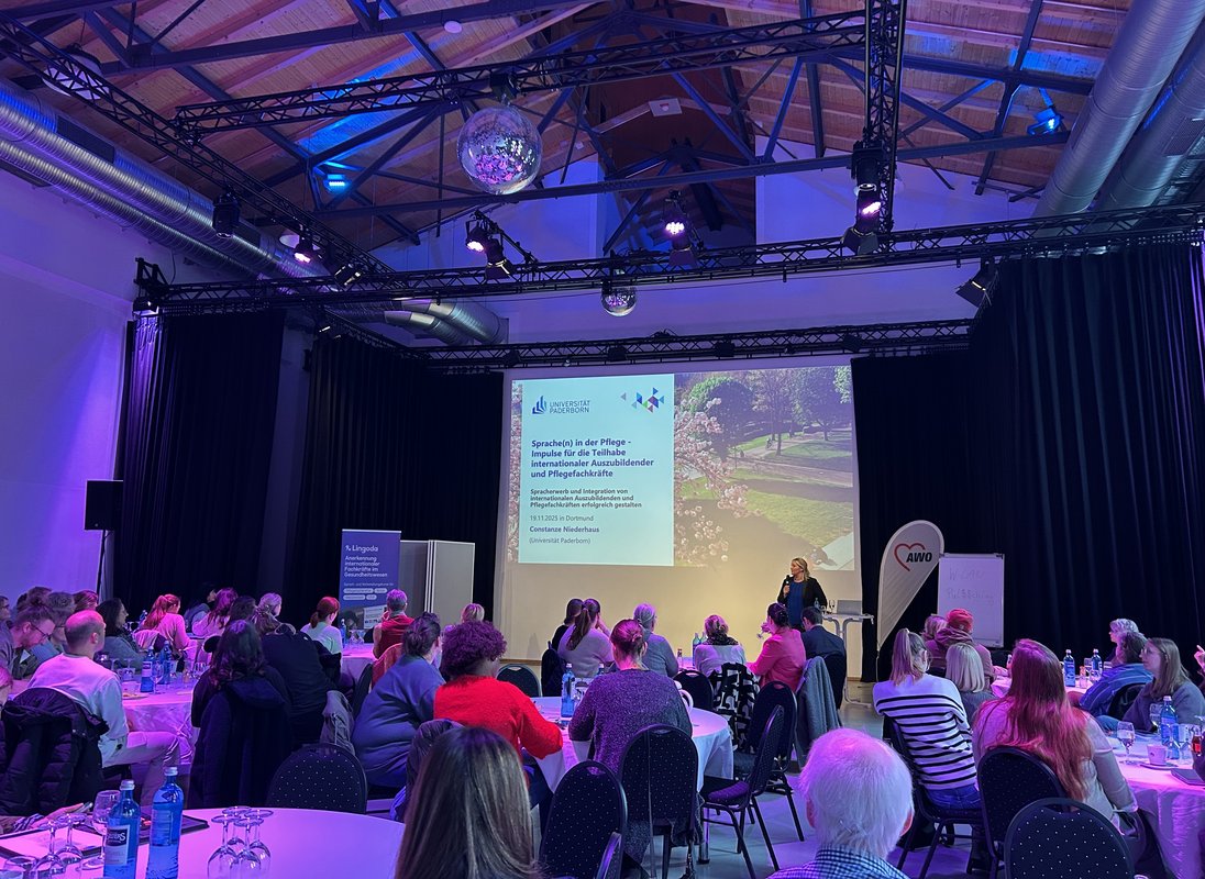 Prof. Dr. Constanze Niederhaus beleuchtete sprachliche Herausforderungen und Ansätze für eine nachhaltige Teilhabe in Pflege und Ausbildung.