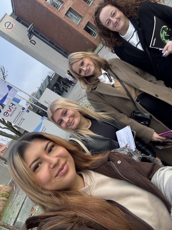 Beim Tag der offenen Tür konnten sich einige Azubis aus dem Kurs GPK 6 zum Studienangebot der Evangelischen Hochschule Bochum informieren. Im Bereich Pflege gibt es viele Studienmöglichkeiten und Aufstiegschancen. Die Auszubildenden bilanzierten die hochschulische Erkundungstour als informativ und inspirierend.