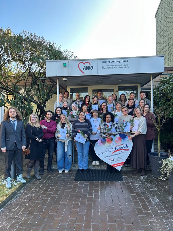 Am Freitag, den 30.01.2026, wurde der erfolgreiche Abschluss des Kurses (GPA 5) gemeinsam mit Kursleitung Jessica Denne, den Praxisanleiter*innen und dem Team der Pflegeschule Marl in schöner und stimmungsvoller Atmosphäre gefeiert. Zur Feier des Tages gab es leckeres Essen und viele gute Gespräche.