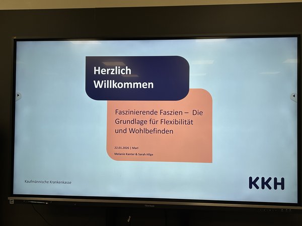 Zu Beginn erfuhren wir viel Wissenswertes über Faszien und bekamen zahlreiche hilfreiche Tipps, die sich gut in den Arbeitsalltag integrieren lassen. Dabei wurde deutlich, wie wichtig es ist, gesund zu bleiben und auch einmal an sich selbst zu denken. Eine große Rolle spielt dabei die Körperhaltung: Schon ein paar Minuten aufrecht sitzen oder gezieltes Dehnen können viel bewirken.